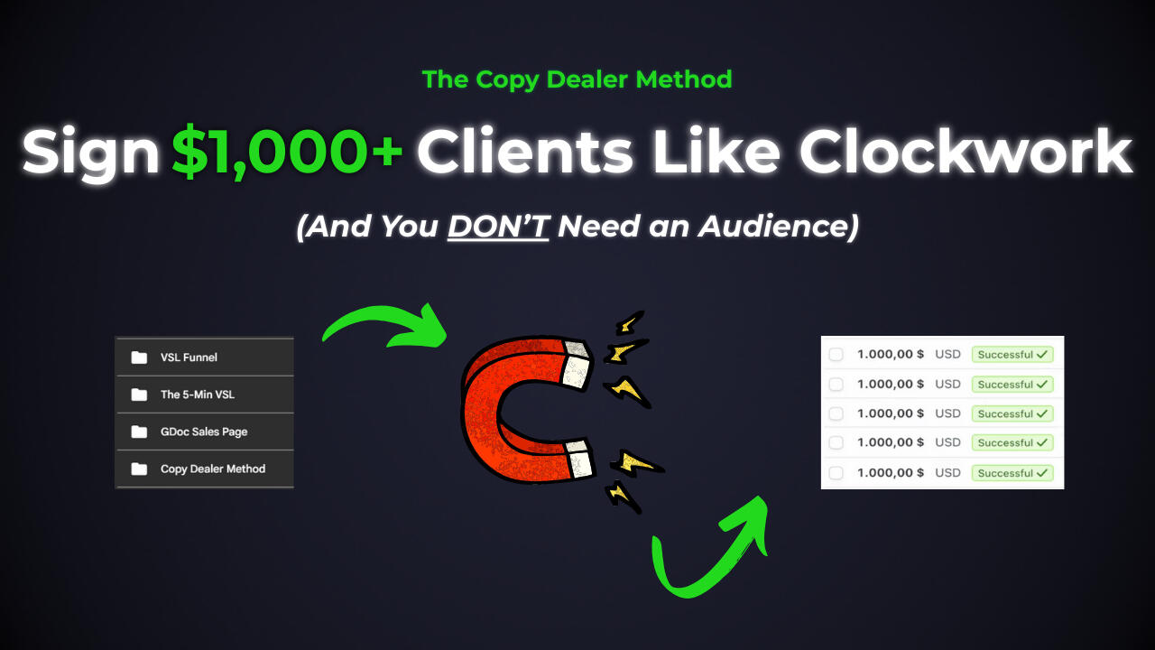 It seems like everyone (+ their grandma) are making money online rn.Well, everyone except you…I know it sucks.The truth?These people aren’t any smarter than you.Or more talented.Or more creative.And you’ve probably watched tons of YouTube videos already.Maybe bought one of those guru courses.Still crickets.Meanwhile, you see 19y/o's post these crazy Stripe screenshots.So the $1M question is:"What do THEY have that YOU don't??"Simple.A REAL CLIENT ACQUISITION SYSTEM.You see, if you wanna make money online in 2026...Then you need to stop using outdated 2019-ish tactics.Spamming 1000s of emails and DM's ain't cut it anymore...What actually works today?1. A Godfather offer (so good it makes saying no feel dumb).2. A plug & play prospecting strategy that positions you as an authority so prospects reach out to you.NOT posting more content.NOT buying another course.NOT trying advice that works for people 1000 steps ahead of you.A system that allows you to sign high-paying clients, consistently and predictably w/o having a big audience online.Now, let me be 100% real with you...Back in 2019, I quit my job to build a coaching biz.And it worked… until it didn’t.Four years later, I went broke... $12k in debt, stuck in a soul sucking cold calling job – 200 calls a day, chasing quotas for someone else’s dream...My only goal:Get outta here ASAP + get back my freedom.So I was binging YouTube videos like a madman.Listening to the online gurus.Trying content, DM's, cold email.But didn't make ONE single $...Until I discovered the simplest way to make money online – selling Google doc offers that solve high-demand problems for businesses.And finally landed my first client ($1,200).Fast forward 7 months of signing clients consistently...I quit my job to go full-time.Now, that didn't happen overnight...It took me months of trial & error figuring out what all those online gurus are hiding behind paywalls...And after sending 1000s of emails getting ghosted, I finally cracked the code to make strangers reach out to ME.I call it:The GDoc Dealer Method.Today, I share with you what I wish someone gave me back when I started.My exact step-by-step system to sign high-paying clients.So, are you ready to finally getting paid?